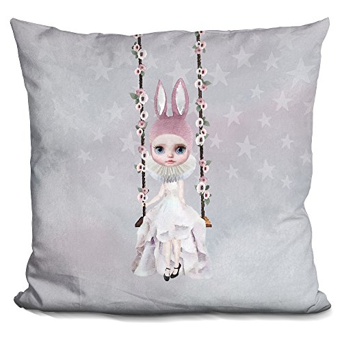 LiLiPi sq Miss Lily Rabbit on Swing Decorative Accent Throw Pillow