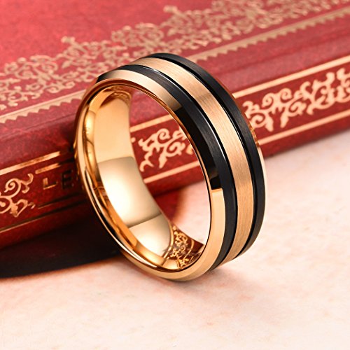 Three Keys Jewelry 8mm Mens Tungsten Wedding Ring Double Groove Rose Gold & Black Engagement Band Ring