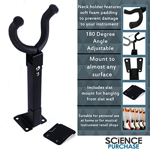 -. Title : Guitar Hanger Stand Holder Wall Mount with 180 Degree Angle Adjustment and Slat Wall Adapter by Science Purchase