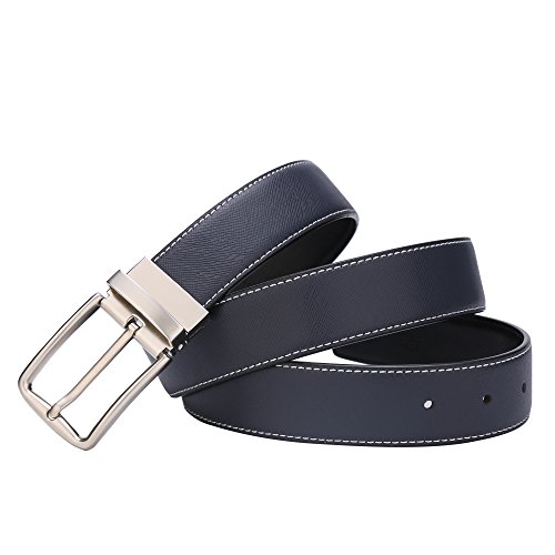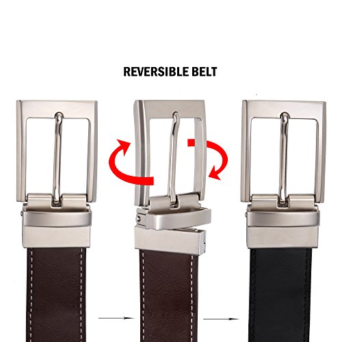-. Title : BISON DENIM Men's Top Grain Leather Reversible Belt - Classic Fashion Designs