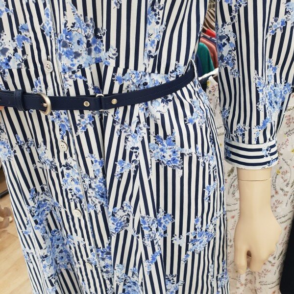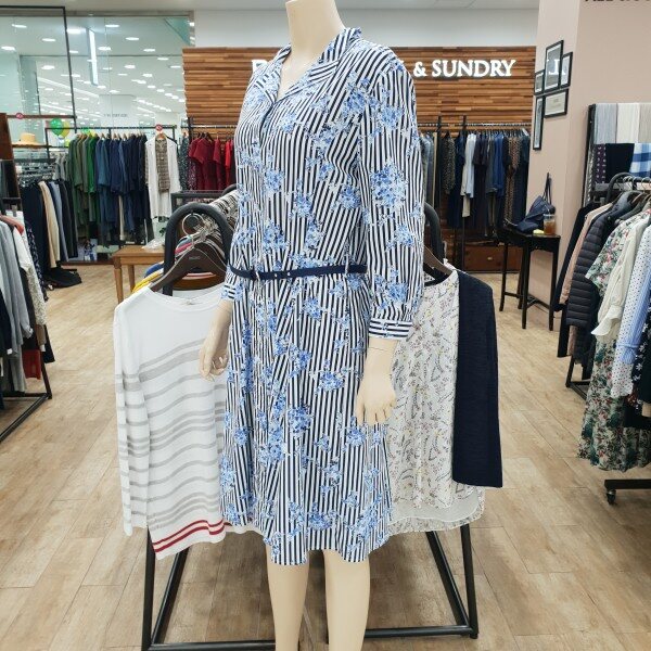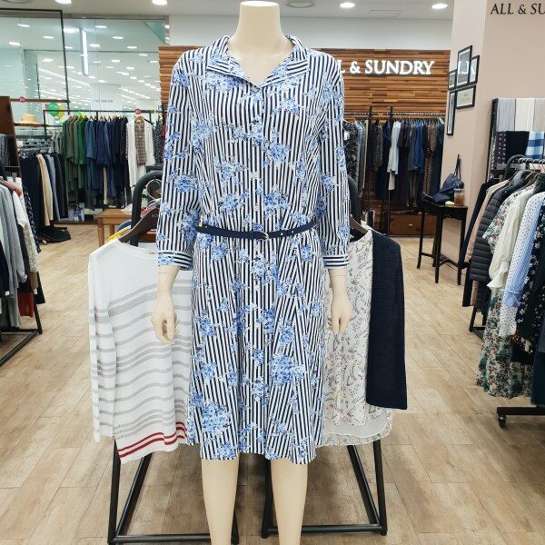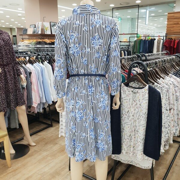 꽃 프린팅이들어간 스트라이프원피스청량해보이는 컬러감이 매력적인 면소재의 가벼운원피스