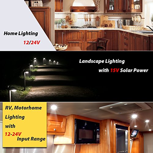 - 12-24V AC & 10-30V DC voltage input range(use with DC driver or AC power), widely used in specialised applications such as RV, motor homes, vehicles, automobiles, boats and yachts, 15V solar power systems, homes to replace 12/24V T3 Halogen light bulbs.
