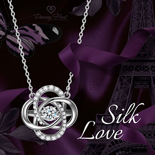 -. Title : Dancing Heart “Silk Love”♥Stone Dances as You Move♥ 925 Sterling Silver 4A CZ Pendant Necklace Jewelry [Delicate Gift Box]