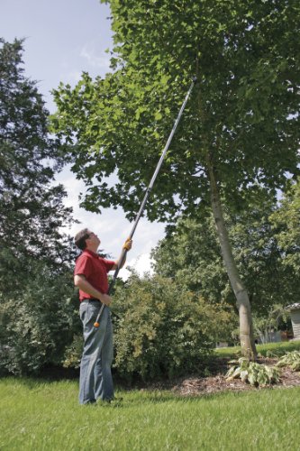 - Feature : Ideal for cutting high branches without climbing a ladder, making low cuts without bending or kneeling or reaching into dense or prickly shrubs / Rope-free design gives you two-handed control and eliminates snags and tangles / Power-Stroke chain-drive gearing provides maximum cutting power / Length: 7.9-12 foot / Included 15 inch WoodZig saw blade powers through thicker branches