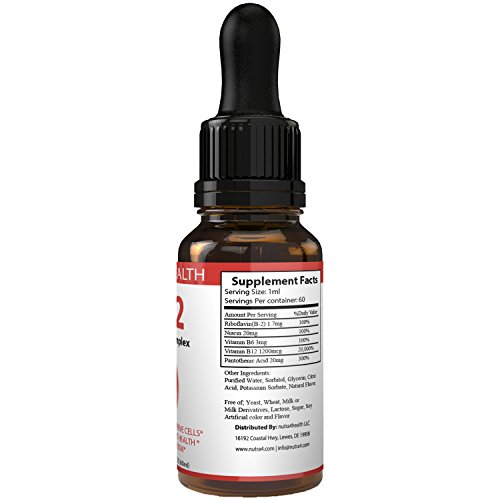 -. Feature : IMPROVE MEMORY AND CONCENTRATION - B12 is a vitamin that is required for development of the brain, nerves, blood cells and for their general functioning. Deficiency of B12 can lead to many problems such as memory loss, fatigue and anemia. Produced in easy to use bottle with dropper. / BENEFITS OF B12 COMPLEX LIQUID DROPS - Increased Energy, Stay Healthy, Healthy Nervous tissue, Healthy Skin / INCREASE ENERGY - B12 is a vitamin that is found in meat and dairy products, and is required for development of the brain, nerves, blood cells and for their general functioning. Deficiency of B12 can lead to many problems such as memory loss, fatigue and anemia. / NUTRA4HEALTH VITAMIN B12 DROPS COMPLEX contains: Riboflavin-required for the proper development and function of the skin, lining of the digestive tract and blood cells, Niacin-required for the proper function of fats and sugars in the body and to maintain healthy cells, Vitamin B6-needed to maintain the health of nerves, skin, and red blood cells. / GLUTEN FREE - NON GMO - CHERRY FLAVOUR