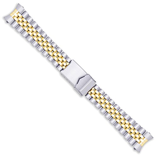 -. Title : Jubilee Style Link Metal Watch Band - Two Tone - 20mm