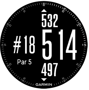 | Yardage to F/M/B (distance to front, middle and back of green) | |