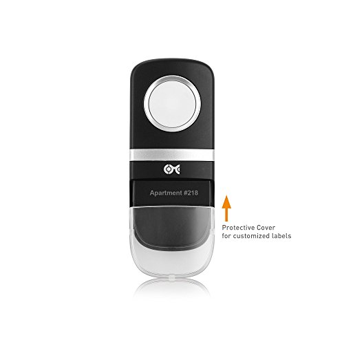 OUTDOOR RATED WIRELESS DOORBELL transmitter has an IP44 water resistance rating for use in warm or cold climate zones; Use the label holder with a protective cover to identify your office suite or apartment number