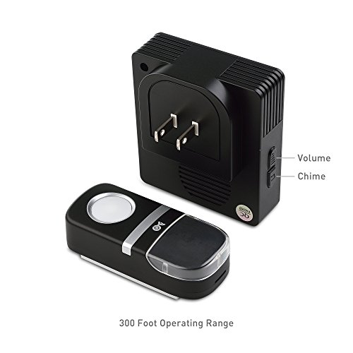 TASTEFUL DESIGN with a turquoise LED on the doorbell receiver; Ideal for adding an additional doorbell with a unique sound; 300 foot operating range covers the footprint of most homes, apartments or small offices