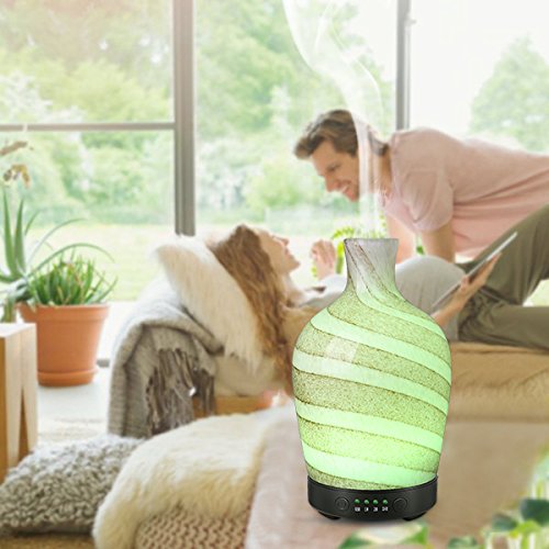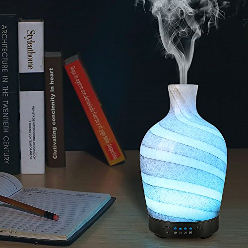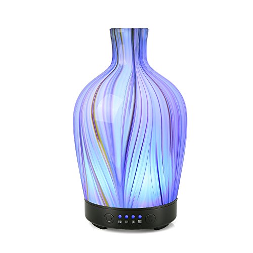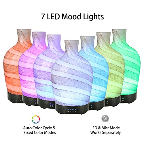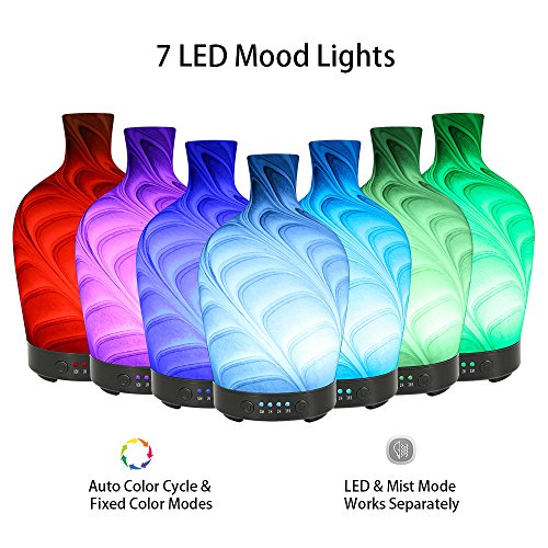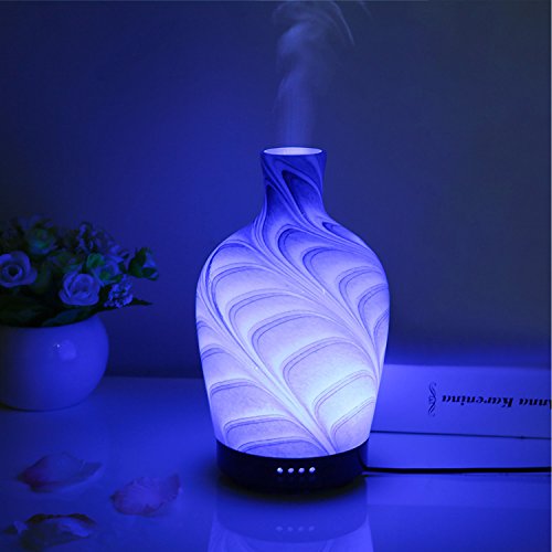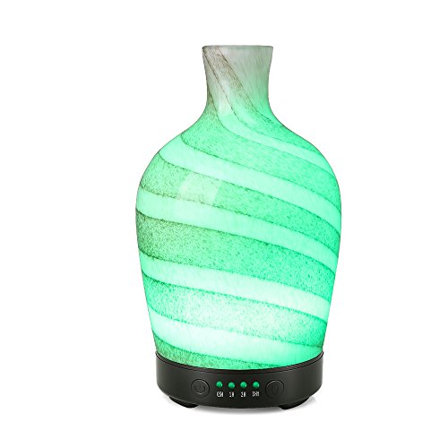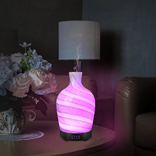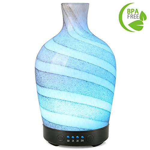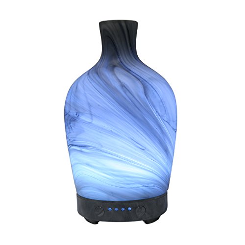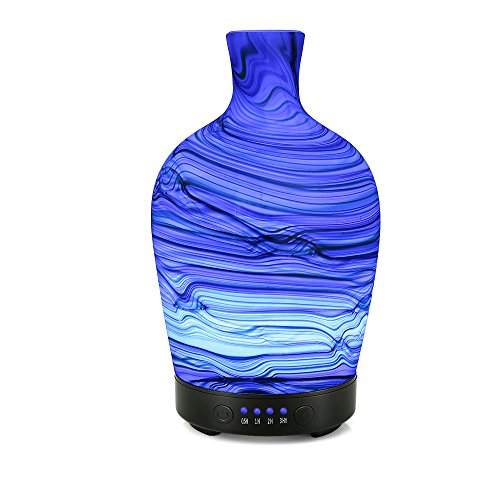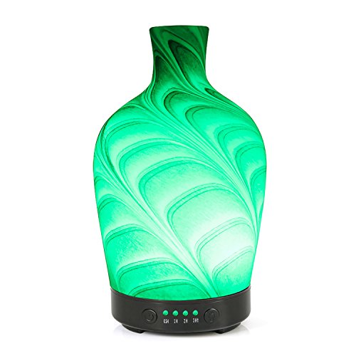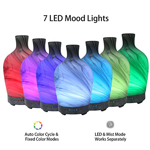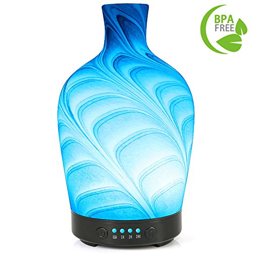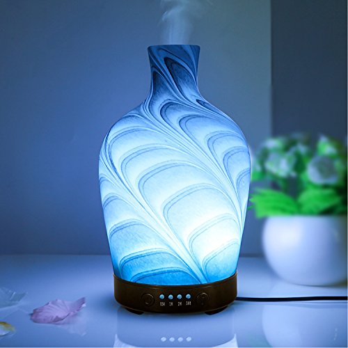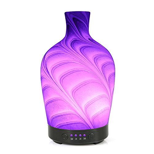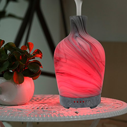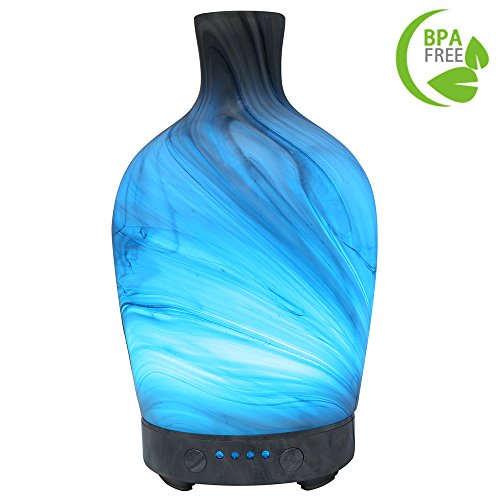 COOSA 100ml Glass Marble Pattern Aromatherapy Essential Oil Diffuser Cool Mist Humidifier with 4 Time Setting and 7 Color Changing LED Lights for Home Office Bedroom Living Room (Multicolor)