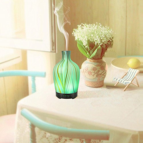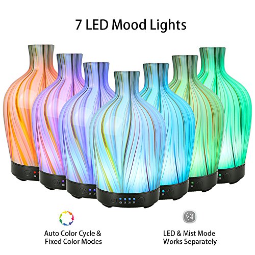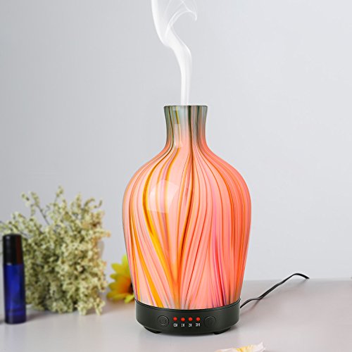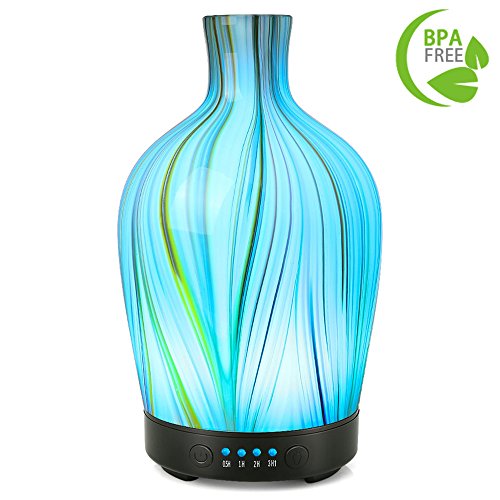 COOSA 100ml Glass Aromatherapy Essential Oil Diffuser Cool Mist Humidifier with 4 Time Setting and 7 Color Changing LED Lights for Home Office Bedroom Living Room (Multicolor-3)
