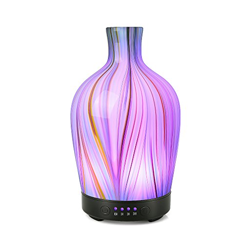 COOSA 100ml Glass Rainbow Pattern Essential Oil Diffuser with 4 Time Setting Colorful Light Aroma Diffuser Cool Mist Humidifier for Home and Office (Multicolor-4)