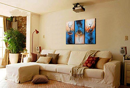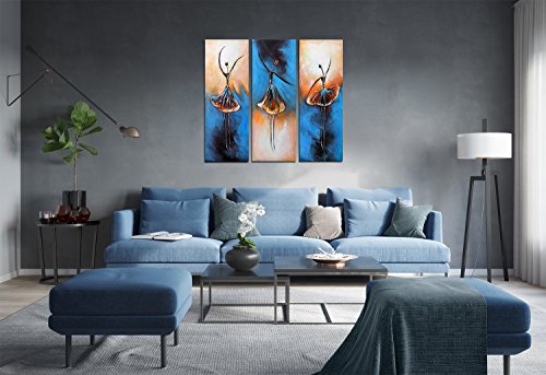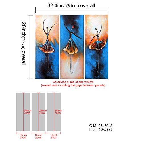 100% hand-painted oil painting artwork are wrapped and stretched with wooden frame, hooks are mounted on the back of wooden bar on each panel for easy hanging out of box.