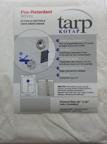 Kotap 15-ft x 20-ft Fire-Retardant White Tarp, Item: FR-1520