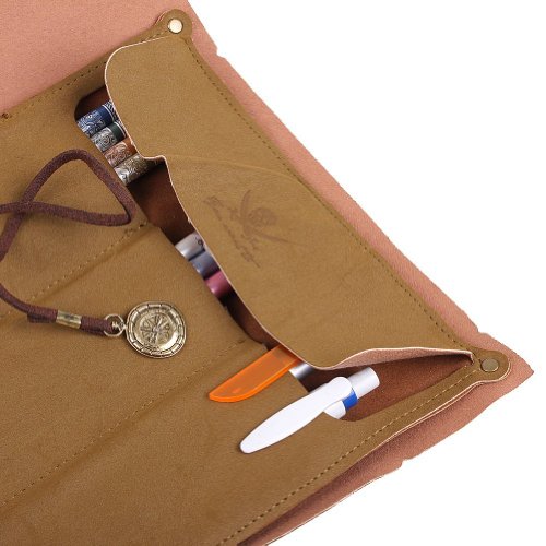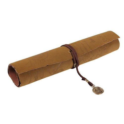 Autofor Retro Vintage Pirate Treasure Map Pattern Roll Up PU Leather Pencil Case Bag Holder Pouch Carrier Cosmetic Makeup Pouch Card Pocket (Compass)