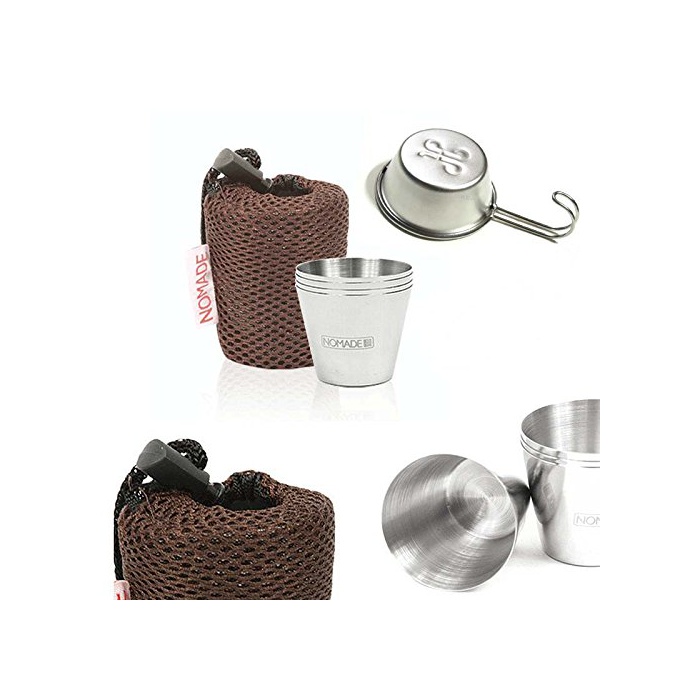 원본상품명: NOMADE ステンレス スチ?ル おちょこ 4P (55 ml) セット メッシュポ?チバッグ カラビナ 1個 小さなカップ 1個, 50 ml 小さなカップ 登山、キャンプ、BBQ、釣り、狩? [
