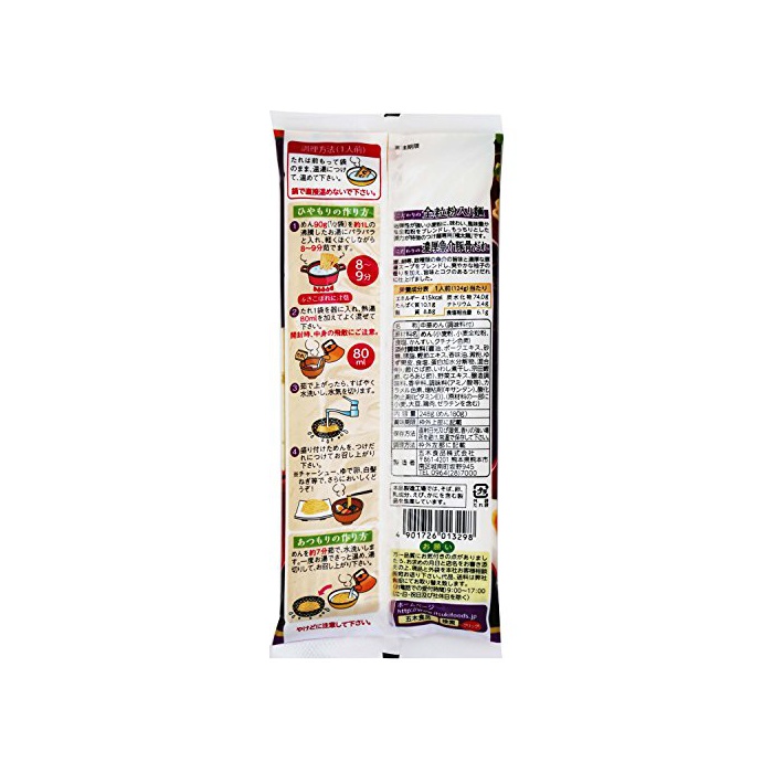 원재료:면(소맥분,밀전 입분,식염,물어 들이마시고, 치자나무 색소) 첨부 조미료〔간장,포크 엑기스,설탕,돈기름,조미료 엑기스,향기 맛유,전분,유즈 과피,식염,단백 가수분해물,혼합 깎아 절(하면 절,정어리 건멸치,종전조미료,## 전갱이절)고, 야채 엑기스,양조 조미료,향신료,조미료(아미노산등)고, 카라멜 색소,증점제(《기산탄》)고, 산화 방지제(비타민E)〕고,(원재료의 일부에 밀,대두,닭고기,젤라틴을 포함한다)