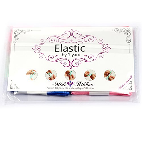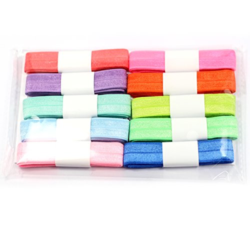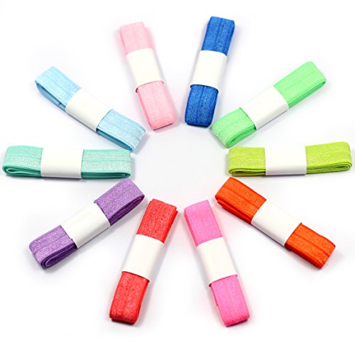 Midi Ribbon Value Pack 5/8" Stretch Fold Over Elastic - 10 Yards Grab Bag- 10 Colors by 1 Yard - Solid Summer Spring Season - for Hair Tie Headband Satin Elastic, Wholesale Elastic