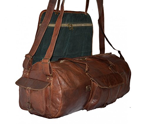 -. Feature : Imported / HLC : THIS IS STYLISH & COMFORTABLE Handcrafted Duffel is made from supple, gorgeous leather so it looks fashionable, forms to fit your body and maintains a classy, elegant design. / PREMIUM MATERIALS: We only use the highest quality leather, stitching, zippers, canvas and brass fittings to carefully craft our designer leather Travel Bags / MAXIMUM STORAGE SPACE: : Organize your belongings fast and easy using the multiple outside pockets or the spacious interior with canvas PROTECTION and double stitching for ENHANCED DURABILITY! / LEATHER tanned for water resistance. Exterior measures 28" x 12" x 12"