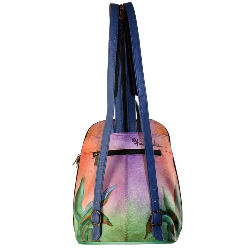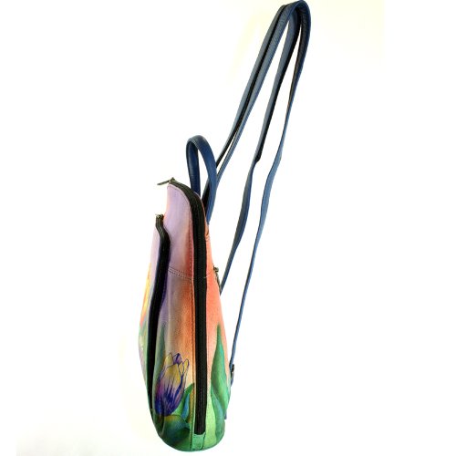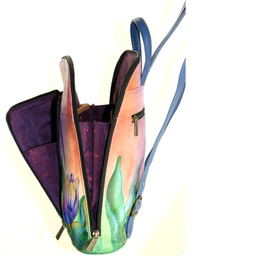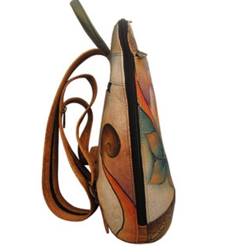 -. Title : Anuschka Hand Painted Genuine Leather Sling Over Travel Backpack