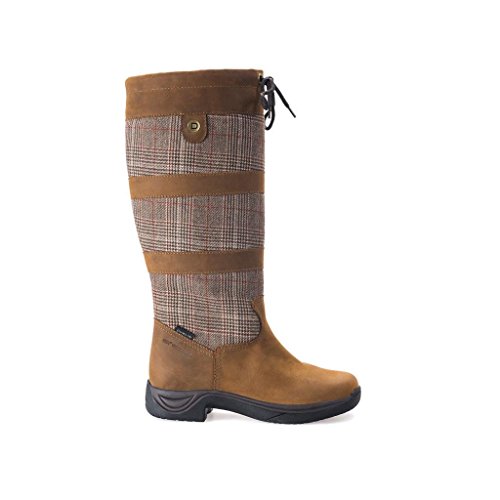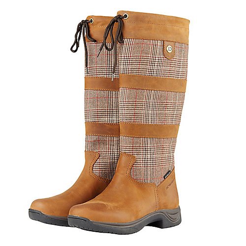 Studio : Weatherbeeta USA Inc. Publisher : Weatherbeeta USA Inc. Binding : Misc. Product Description Dublin Ladies River Plaid II Brown Boots Attractive and functional, the Dublin Ladies River Plaid ll Country Boots are perfect for riding and work. Made from full grain leather and featuring an attractive plaid upper, The River Plaid ll Country Boots have a HBR(R) waterproof, breathable membrane up to 6 inches up the calf. The Dublin River Plaid ll Country Boots are made with RCS footbed system for all-day comfort and moisture control, heel and arch support with double layer cushioning for added comfort, a breathable nylon lining, and a durable yet lightweight Tough Tech rubber sole that's specifically designed to fit into riding stirrups. Features: Full grain leather Attractive plaid upper HBR(R) waterproof, breathable membrane Breathable to just over 6 inches up the calf RCS footbed system for all-day comfort and moisture control Heel and arch support Double cushioning layer for great comfort Breathable nylon lining Durable, lightweight Tough Tech rubber outsole is designed to fit into a stirrup for riding Item Specifications: Color: Brown 0