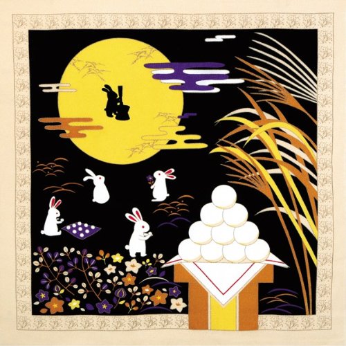 -. Title : 彩時記 丹後ちりめん友仙風呂敷(ふろしき) お月見 二巾(68cm幅)
