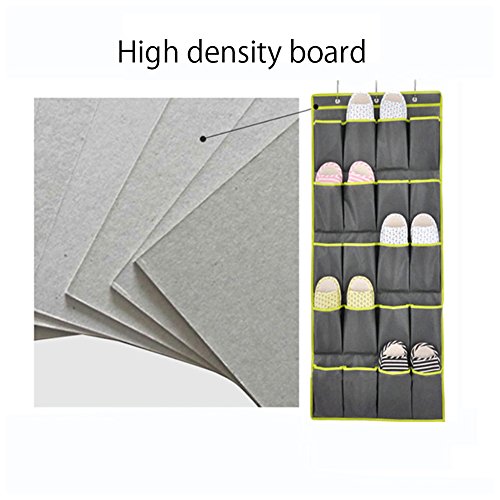 -. Binding : Kitchen -. Brand : Duody -. Feature : Smart, simple shoe storage solution / 24 clear pockets organizes up to 12 pairs of shoes / Frees up floor space by hanging over the door / See through pockets for quick visibility / Also great for organizing bathroom and cleaning supplies, toys and crafts -. ProductGroup : Home -. ProductTypeName : HOME -. Title : Clear Over The Door 24 Pocket Shoe Storage Rack Non-Woven Receive Hanging Bags