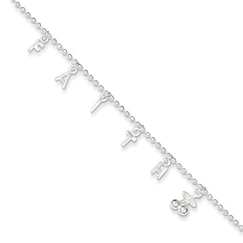 -. Title : Genuine 925 Sterling Silver Dangle FAITH Anklet Length 10 Inch w/1"ext.