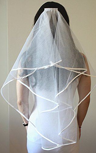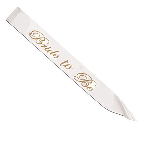 BRIDE TO BE SASH & VEIL: gold script on white satin for a lovely sash that's sewn and easy to wear; elegant cascading veil with satin edge that measures 31 inches with comb that will make your bachelorette feel like a bride!!!