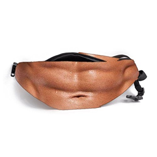 -. Feature : 3D P.R.Int fake Men's Muscle Belly Waist Pack Bag, A lovely bag full of personality, so fresh and unique. / Fit most thin person to have a big belly.Adjustable waist belt with solid buckle and canvas strap. / Material:PU and canvas leather. Water-resistant design makes your cash phone accessories away from water. Not completely waterproof. / It is good for outdoor sport,such as walking,hiking,traveling and so on.You can attractive more eyes in crowd / Size 35*16cm, Length 110cm. Large capacity and solid zipper keep your things a lot and safe when you get fitness or running.Free your hands!