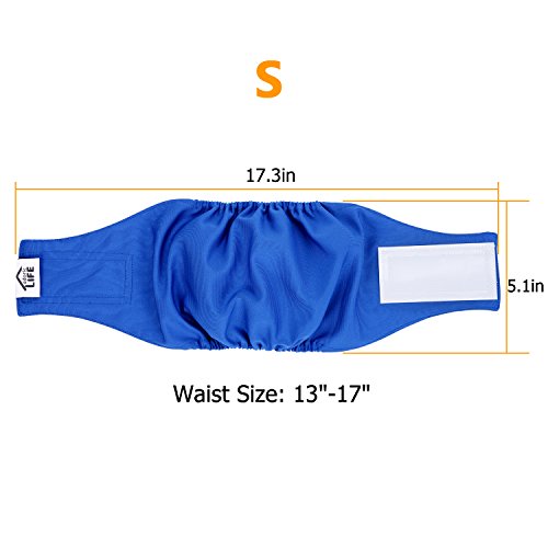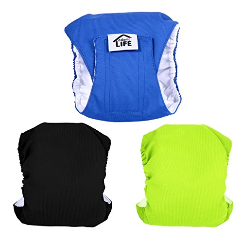 Strong Hook and Loop Easy and quick to wear and will not stick to your pet's fur. Adjust to the right and more comfortable size to fit your dog. Elastic Bands Design Make your dog accept, enjoy and move freely. Keep it stay in place well when dog move. Highly Absorbent Ultra Soft Durable, breathable and comfortable material. Provide your pup with long-lasting protection. 100% waterproof layer prevents side leakage. Healthier Happier Life Perfect solution for dogs that has not yet house-trained. Stop dog from males marking, excitement urination or incontinence. Prevent bacterial, virus and the risk of infection. Make your house tidy, make you doggie happy. Reusable Environment Friendly Can be washed and reused again and again. Save environment and money, better than disposable wraps. Attractive Colors 3 pieces in one pack, 3 different colors selectable. Bright colors make your pet looks active and lovely. Caution: 1. Adjust the hook and loop and loose 1/2 inch to ensure comfort. 2. Machine washable without bleach, softeners, perfumes or powder. 3. Hand washing with detergent is recommended. 4. Air dry or put it in a dryer, tumble dry below 30°. 5. Please fasten the hook and loop so as not to stick to other objects, reduce friction and make it more durable and sticky. Specification: Size: 17.3*5.1 inch Color: Black, Blue, Fluorescent green Application: For small male dog with waist size 13"-17" Package Contents: 3 x Small Male Dog Diapers (3 colors) Warranty Every Adoric Life small size male dog diaper includes ONE-year worry-free quality guarantee. 0