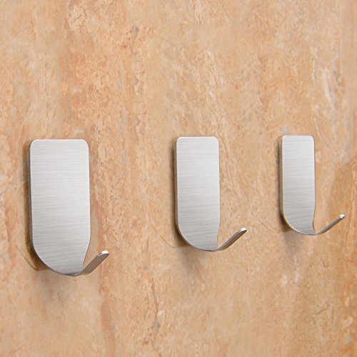 TSJ Stainless Steel Hooks 3M Adhesive Heavy Duty 12 Pack Brushed Nickle Hook for Kitchen, Bathroom, Door