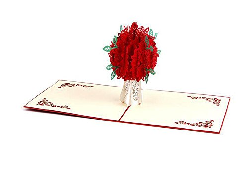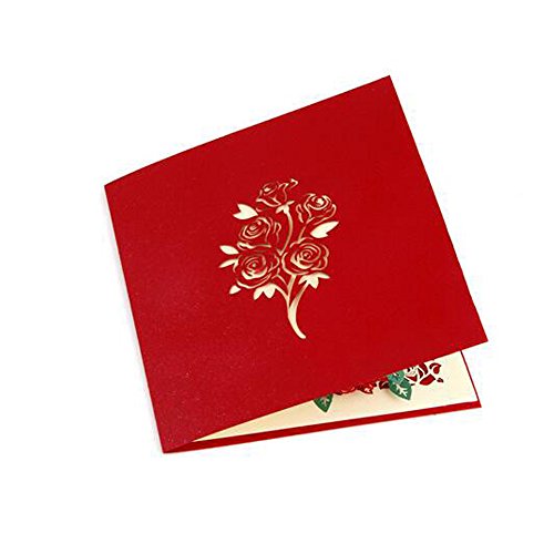 lilliCraftGift 3D Pop Up Greeting Papercraft Cards with Envelope Loving Rose Flower for Valentine Birthday Thanksgiving New Year's Christmas