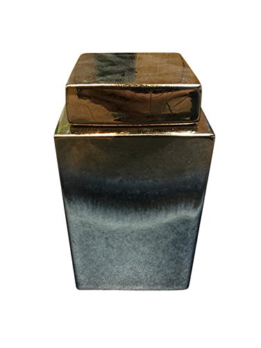 Benzara Gleaming Ceramic Covered Jar, Gold and Gray