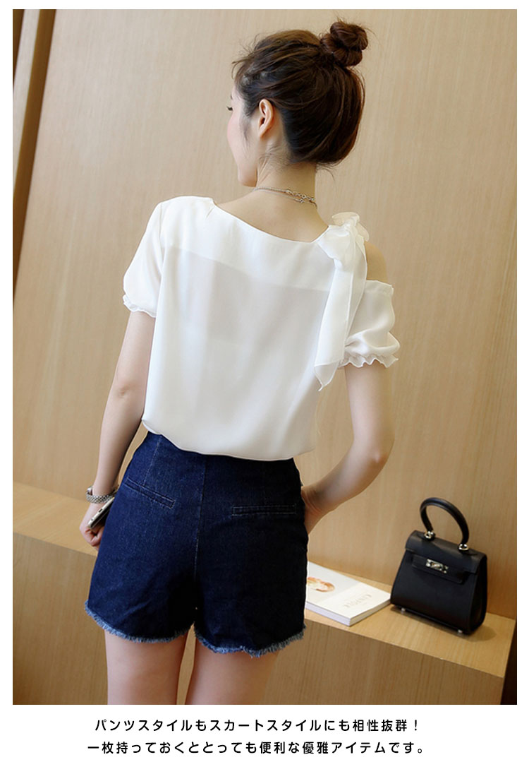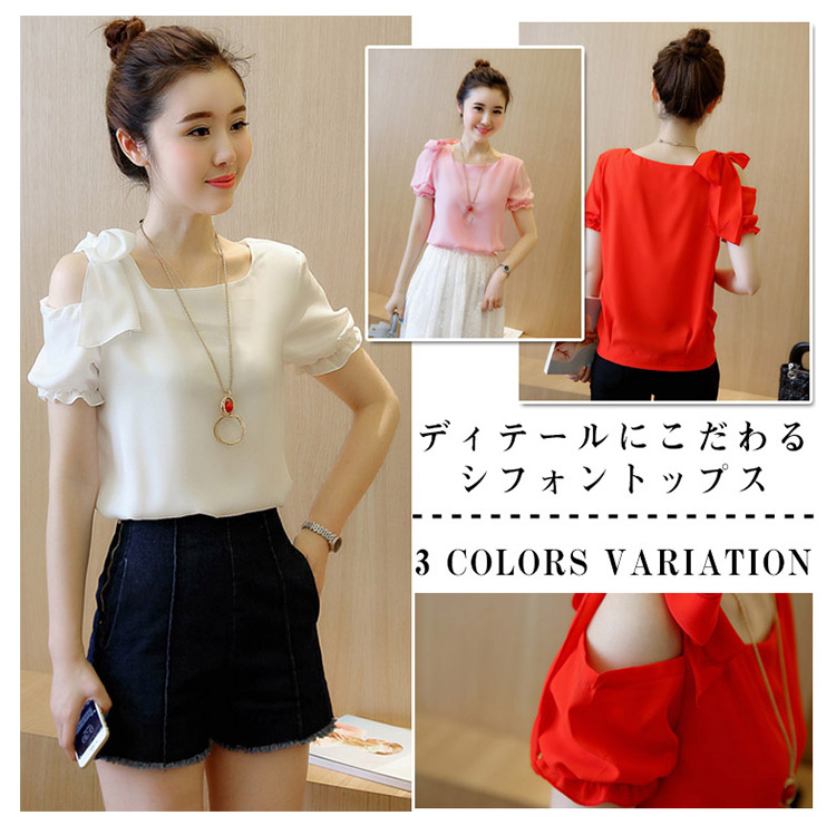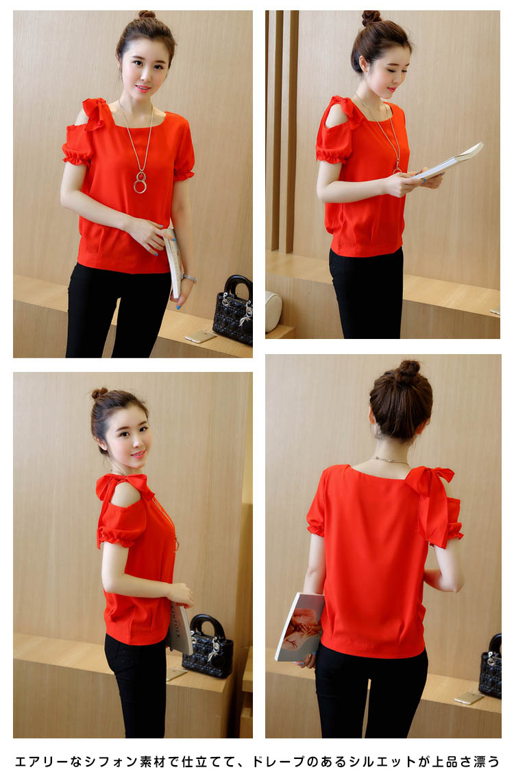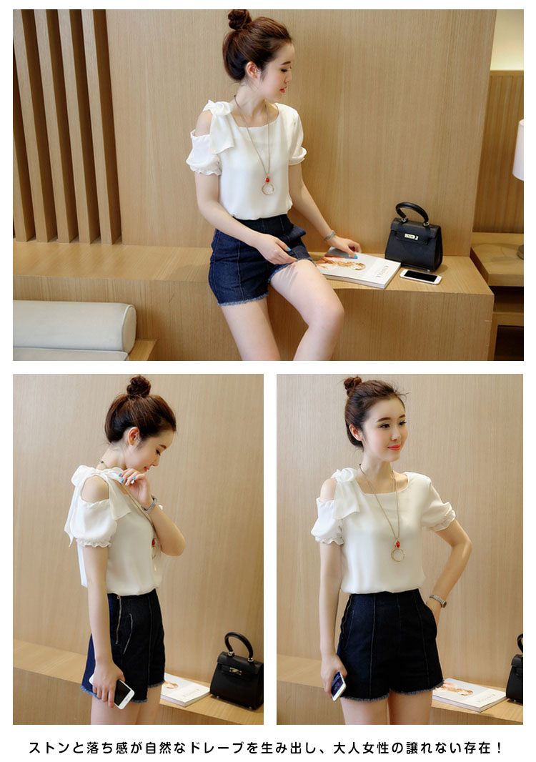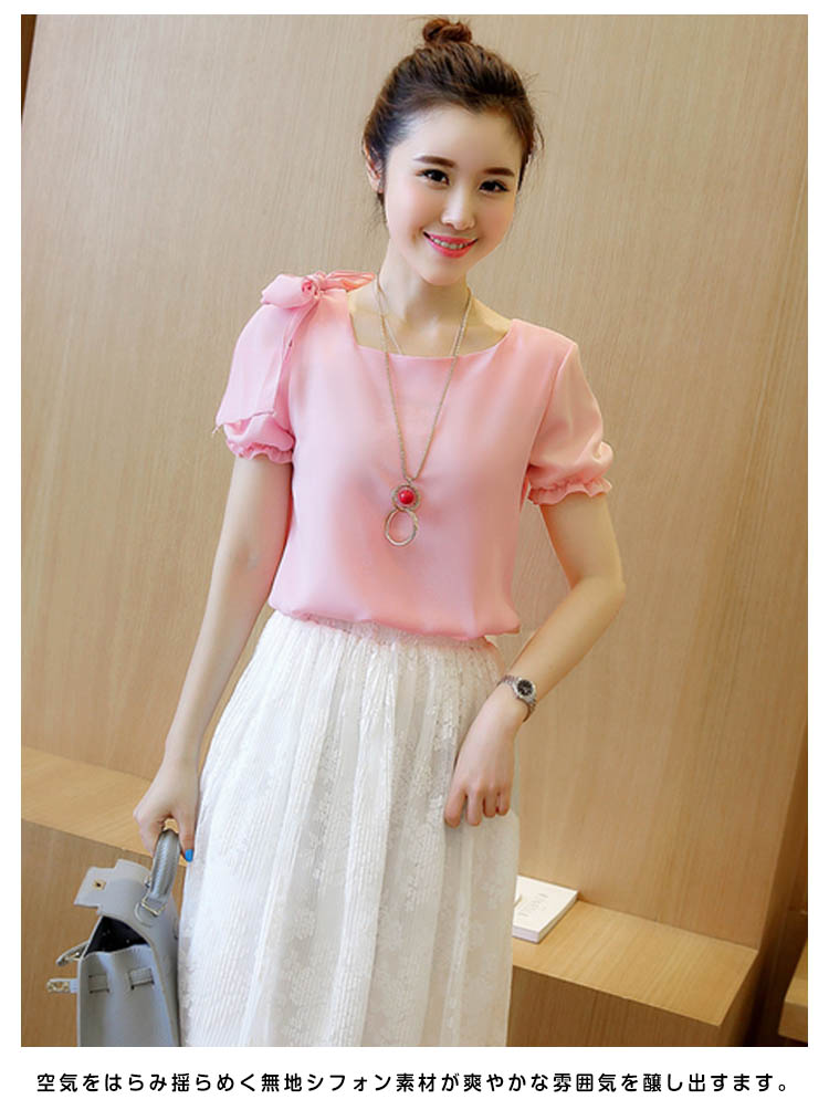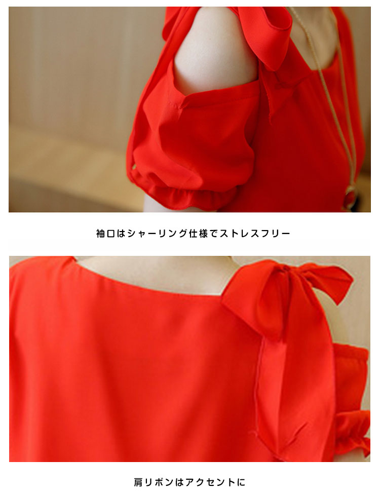 | ディテールにこだわるシフォントップスエアリーなシフォン素材で仕立てて、ドレープのあるシルエットが上品さ漂う肩にあしらったリボンが上品リッチな表情◎空気をはらみ揺らめく無地シフォン素材が爽やかな雰囲気を醸し出すます。裾タックが施され、トップスをINしてもOUTしてもお洒落決まりストンと落ち感が自然なドレーブを生み出し、大人女性の譲れない存在!パンツスタイルもスカートスタイルにも相性抜群!一枚持っておくととっても便利な優雅アイテムです。 | |