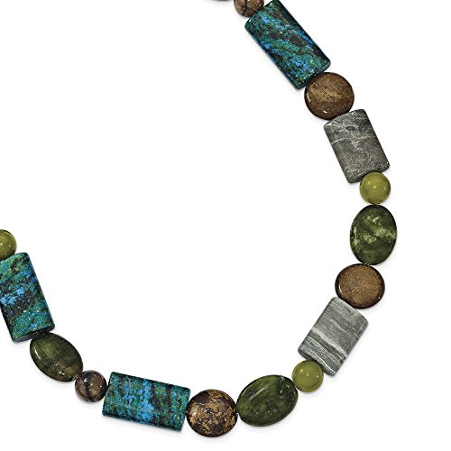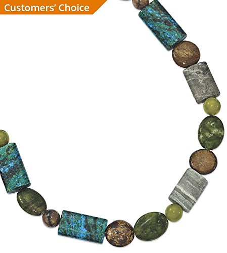 ICECARATS DESIGNER JEWELRY 925 STERLING SILVER BRONZITE/JASPER/STABILIZED CHRYSOCOLLA CHAIN NECKLACE