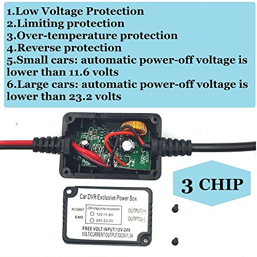 - Protect Your Car Battery - The kit will shut down the power once the in-built sensor detect a low voltage (<11.6V for 12V vehicle or <23.2V for 24V vehicle), protects your car's battery from being drained by dashcam