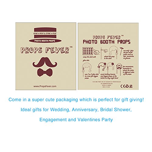 - EXTRA FUN- designed in the United States with wedding perfection in mind, these photo booth props are the PERFECT touch for any wedding, bridal shower, engagement or bachelorette party. This vintage props set will be the perfect addition to your special backdrop, giving your wedding photos that everyone will want to share.