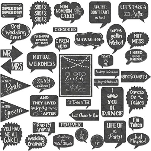 - HIGH QUALITY AND AFFORDABLE - with the highest quality card stock paper, these photo booth props are thick, durable and made to withstand the fun and excitement on your special day! 35+ PCS qualified props provide unlimited potential for creative and fun photos.
