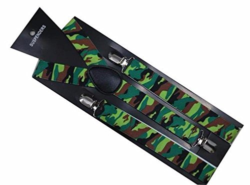 Unisex Adult Bright Green Camo Clip-On Fashion Suspenders 2.5 cm/1"