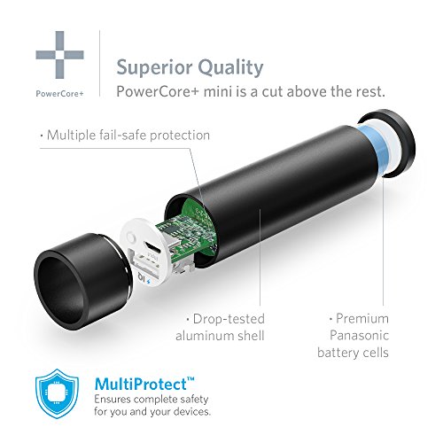 [The Most Compact Aluminum Portable Charger] Anker PowerCore+ mini (Premium Lipstick-Sized 3350mAh Power Bank) 3rd Generation External Battery with High Quality Panasonic Battery Cell