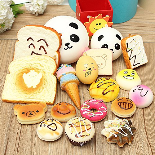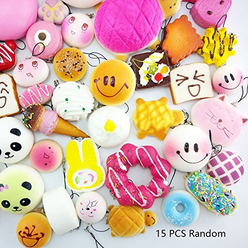 Techcell 15 Piece Food Resin Flatback Random Kawaii Mini Soft Squishy Foods Panda Bread Bun Toa...