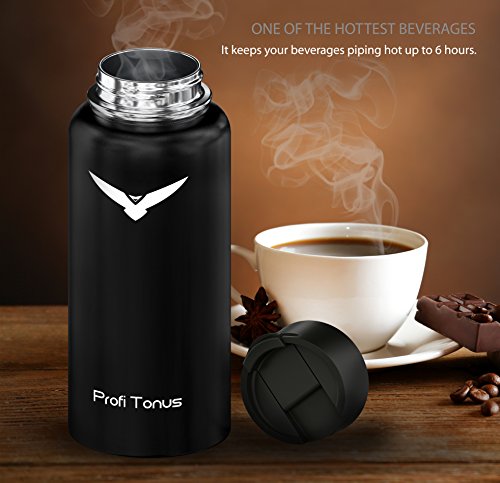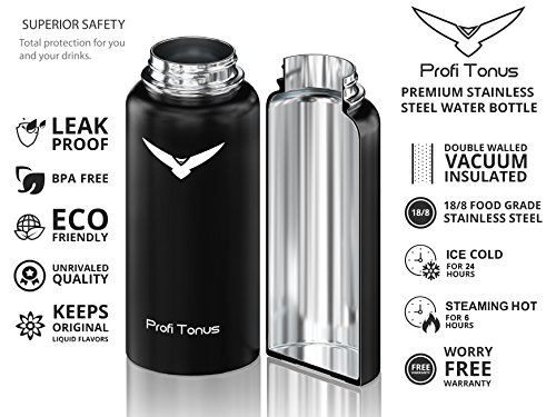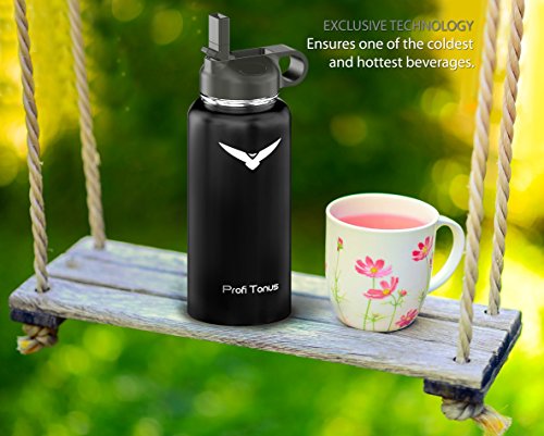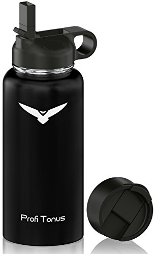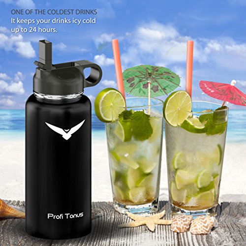 Insulated Stainless Steel Water Bottle - One of the Coldest 32 oz Leak Proof Sports Double Wall Vacuum Flask (1 Liter) - Wide Mouth with BPA Free Straw for Ice Cold Drinks, Flip Lid for Hot Beverages