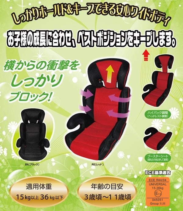 fk094igrjs背と座の組み合わせ式タイプです。 製造国:中国 素材・材質:本体:PP表皮:ポリエステル 商品サイズ:W460×D540×H640mm 重量:3.5kg 仕様:対象年(月)齢:3~11才適応体重:15~36kgヨーロッパ規格合格品(E13) ECE-R44/04適合 付属品:取扱説明書兼保証書(保証期間:1年)※お届け地域により、別途運賃がかかる場合やお届けできない場合がございますので、お問い合わせ下さい。