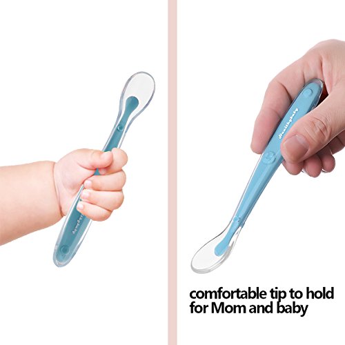 -. Title : 4 Pack Baby Spoon BPA Free Soft Silicone Tip-Best Size Toddler Spoons Self Feeding Spoon-Bonus Teether and Travel Case