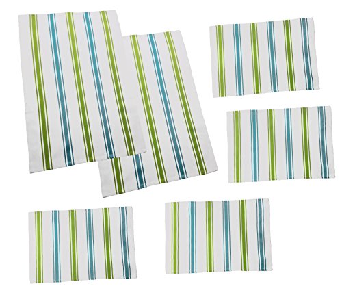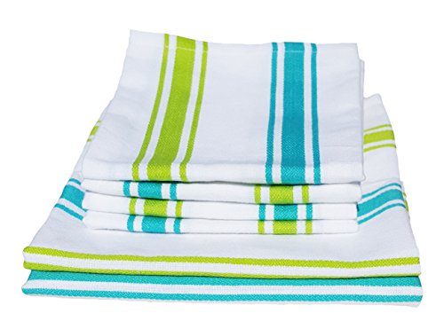 Dish Towel, Tea Towel, Boldways 6 piece set, Two 16"x24" & Four 12"x18" (Green & Turquoise)