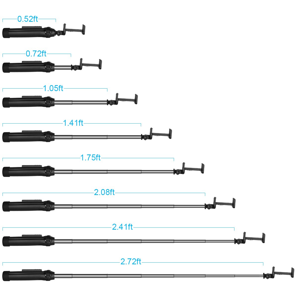2. It can extend up to 85 cm long, so you can have a camera further away and better viewing angle can be obtained.