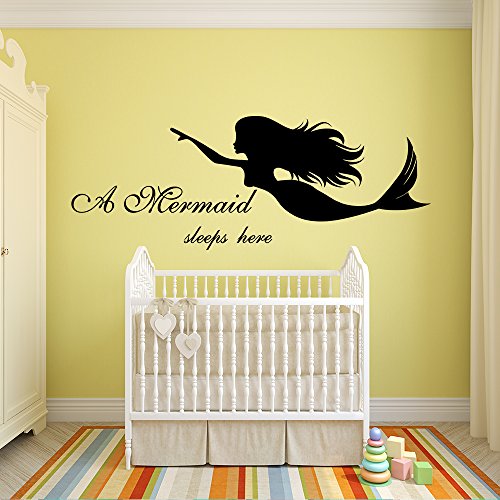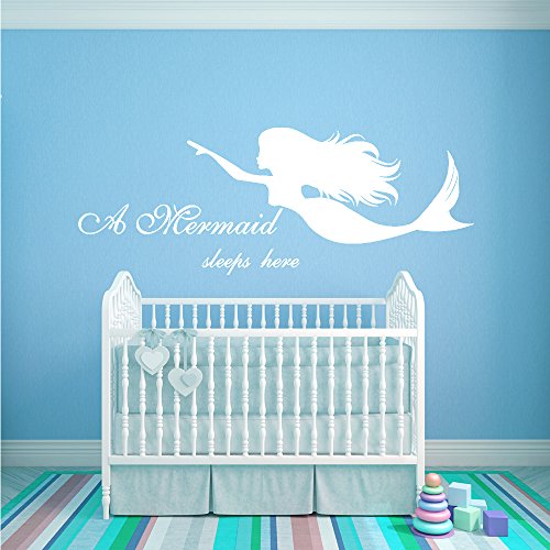-. Title : N.SunForest Vinyl Wall Decals Quotes A Mermaid Sleeps Here Removable Wall Decor for Baby Girl Nursery Bedroom Bathroom Window