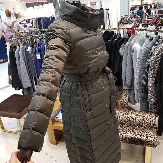 구스다운패딩으로 더블버튼으로 디자인된 스타일입니다