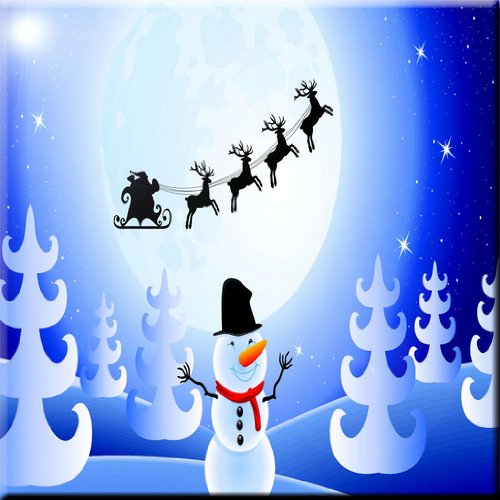 Rikki Knight RK-6intilec-8906 6" X 6" Vector Santa Claus, Trees & Snowman Design Ceramic Art Tile